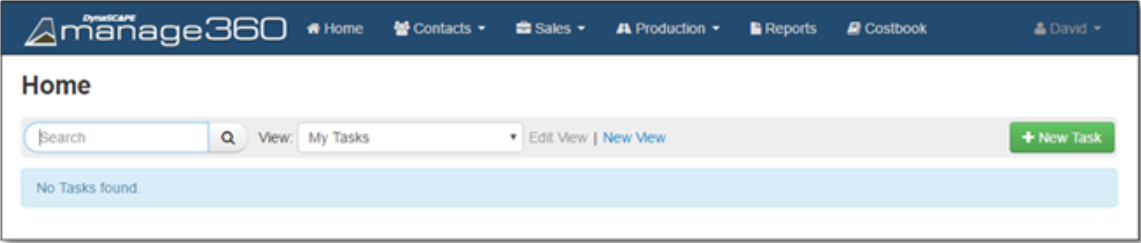 On the Home screen you can see your Future, Overdue and Completed Tasks with the My Tasks view as well as add a new task with the New Task button. The tasks that you see could be tasks you have created for yourself or tasks that have been assigned to you. Alternatively, you can select the All Tasks view to see Tasks assigned to anyone or create a New View to customize the Tasks displayed.