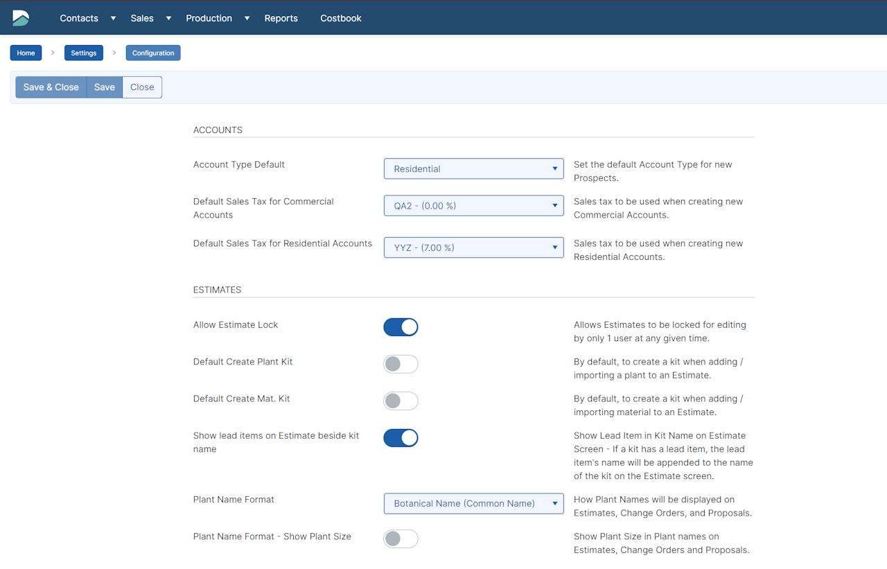 Plant Name Format - How Plant Names will be displayed on Estimates, Change Orders, and Proposals.