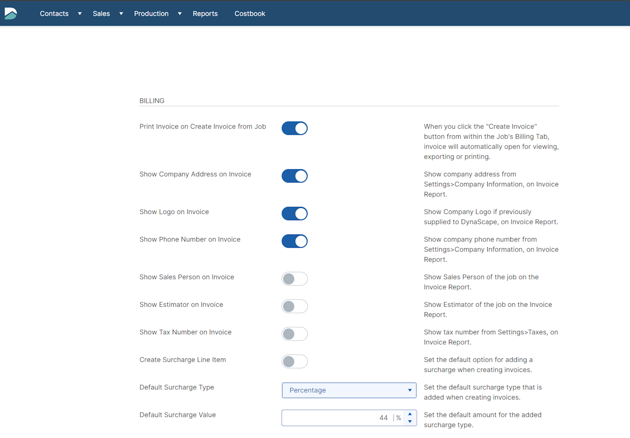 Default Surcharge Type - Set the default surcharge type that is added when creating invoices.