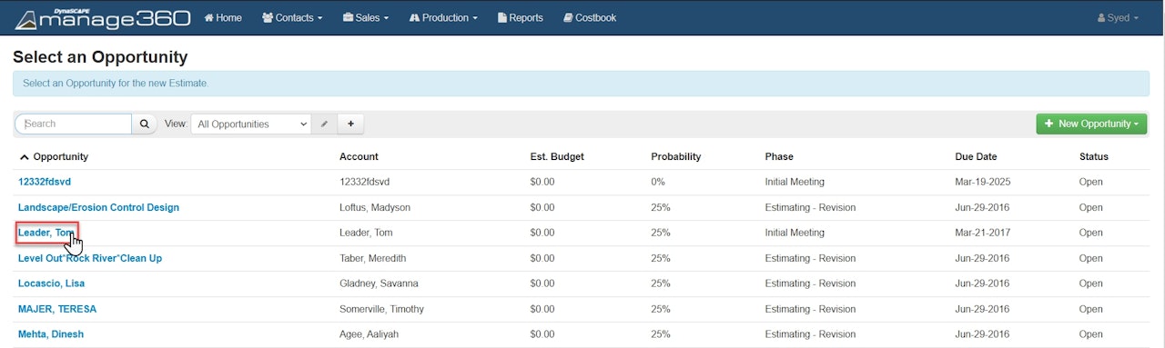 On the estimate page, there will be several tabs. All the information populated on the Details tab was transferred from the Opportunity.
