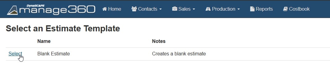 Once the customer has decided to proceed with the work being offered, we will begin creating a proposal for them. This is done by navigating to the Opportunity, selecting the Construction Estimate tab, and then clicking the green New Estimate button in the top-right corner. You will be directed to the template page, where you will select a template to start from (template creation will be covered later in the guide). Most of the time, the Blank Estimate option will be chosen.