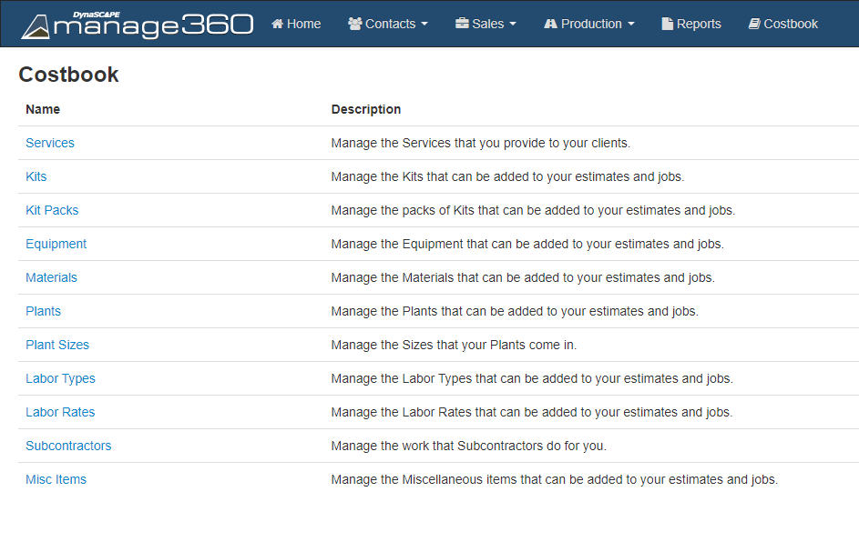 A short review of the Costbook Items is provided below; this information will assist you in understanding what each Costbook Item performs and how it impacts estimation.