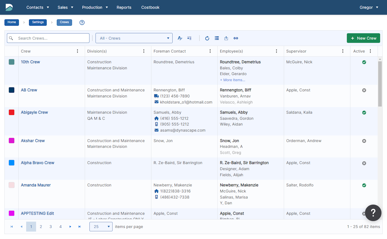 The crew list page includes detailed information about each crew. The page can be searched or have a filter applied. Additionally, the columns can be re-ordered or hidden depending on preference. All of these functions will be reviewed.