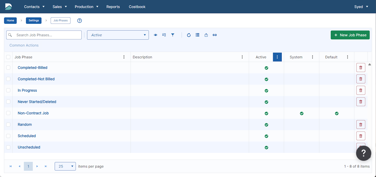 Job Phases can be used to manage the stage in which each job currently exists. This can be useful when sorting or filtering the Job Page. Additionally, this can be used as a filter on the Job Management reports to allow the report to only run against certain jobs.