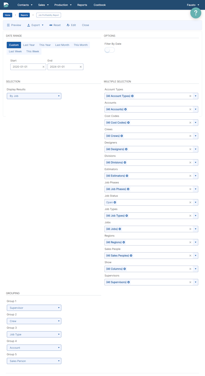 The Job Profitability report allows you to capture the profitability of any construction-type job.