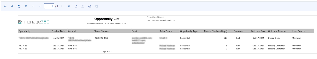 The Opportunity List report lets you view detailed information about any Opportunities that match the report criteria. Depending on the level of information required, different fields can be shown or hidden on the report.
