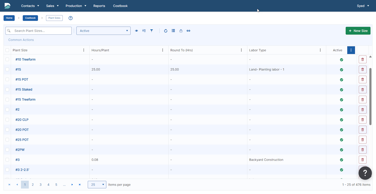 The Plant Size allows you to specify an amount of labor and Labor Type for each size. This labor is for installing a single plant of the chosen size.