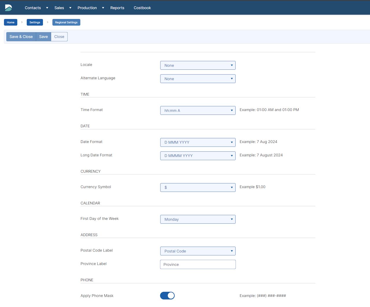 Properly configuring regional settings is essential to ensure that the Manage360 meets the local standards and user preferences.