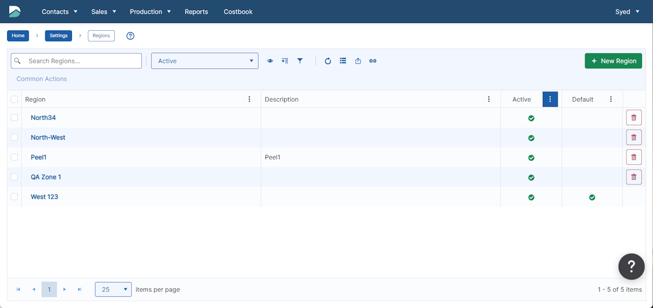 Regions allow you to track the general locations from which your accounts come. They are used in many reports in Manage360 to see Opportunities created per Region or Job Profitability by Region. Additionally, they can be used to filter when creating routes or adding work orders to the calendar.