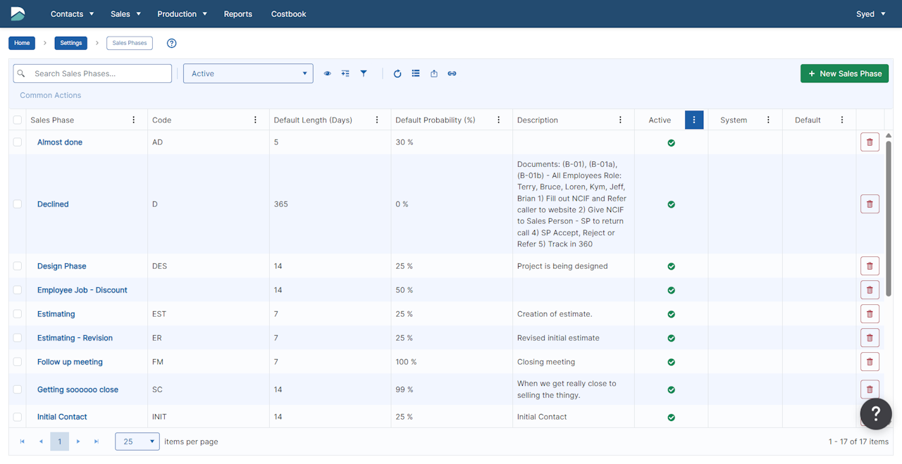 Sales Phases allow you to track where the opportunities are in your sales cycle. This is useful when trying to see where each Opportunity currently sits, and how many Opportunities are in each Sales Phase. These Sales Phases can be used on the Opportunity List, Sales Performance and Sales Pipeline reports to help manage the sales process.