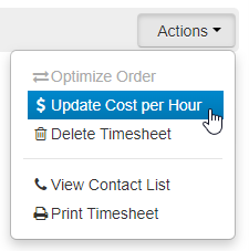 2. Click on the Actions menu and select the ‘Update Cost per Hour’ option.
